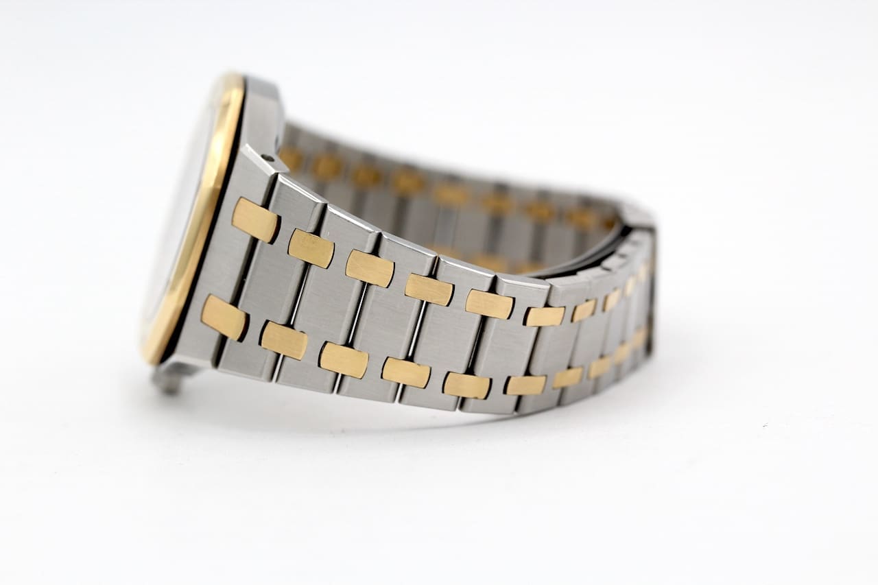 Entdecken Sie die seltene Audemars Piguet Royal Oak 14468SA, eine ikonische Luxus-Armbanduhr aus Edelstahl und 18K Gelbgold. Mit ihrem markanten Design, dem automatischen Uhrwerk und der legendären Royal Oak Ästhetik steht dieses Modell für zeitlose Eleganz und höchste Uhrmacherkunst. Ideal für Sammler und Liebhaber exklusiver Swiss Made Uhren.